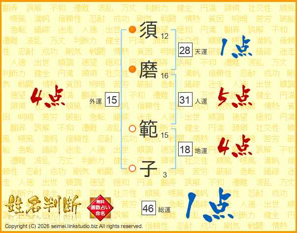 須磨範子さんの総運は46画の1点!