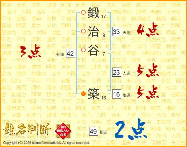 鍛治谷築さんの総運は49画の2点!
