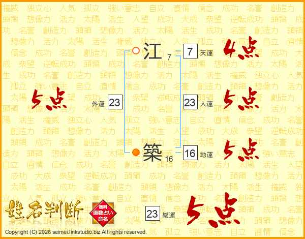 江築さんの人運は23画の5点!