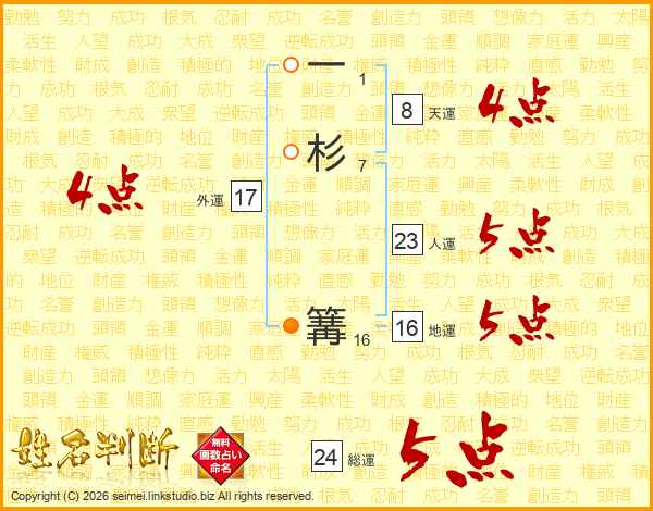 一杉篝さんの人運は23画の5点!