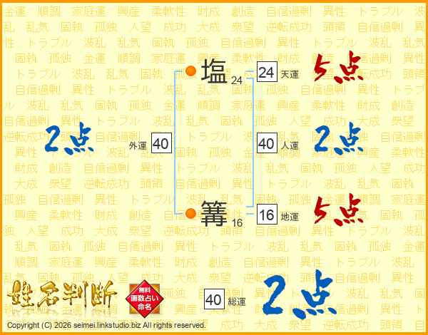 塩篝さんの総運は40画の2点!