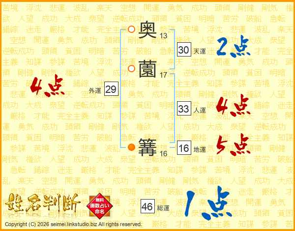 奥薗篝さんの総運は46画の1点!
