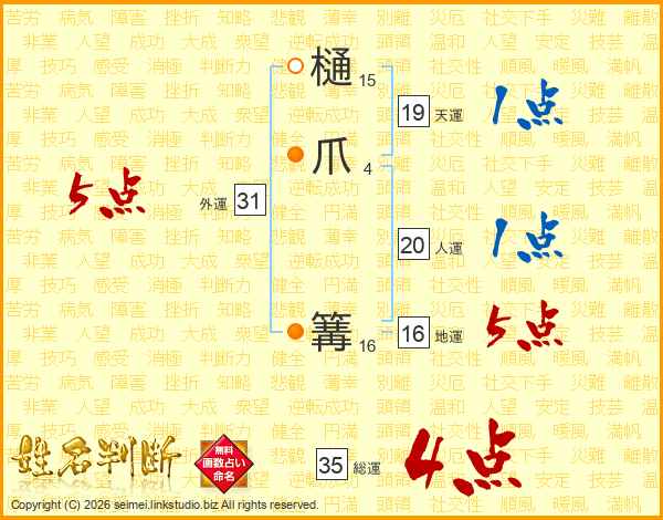 樋爪篝さんの外運は31画の5点!