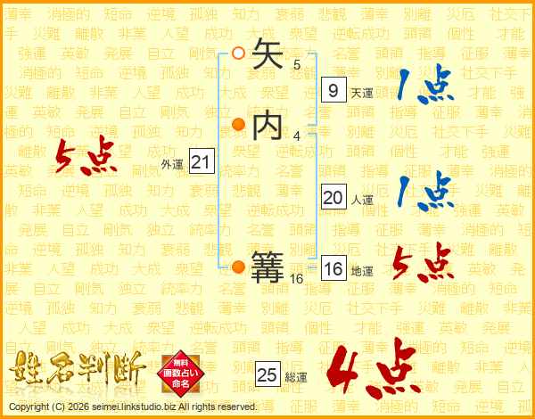 矢内篝さんの総運は25画の4点!