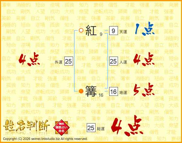紅篝さんの総運は25画の4点!