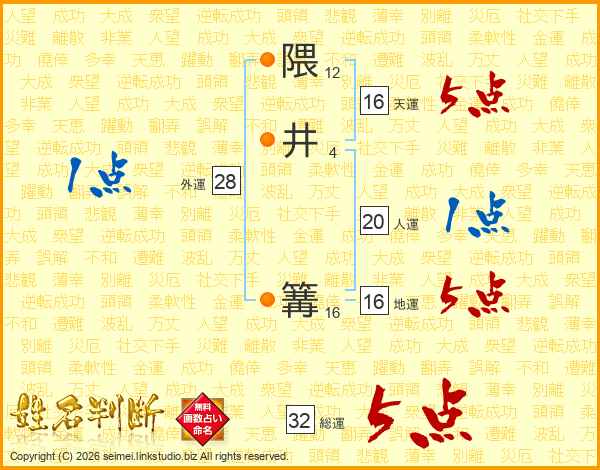 隈井篝さんの天運は16画の5点!