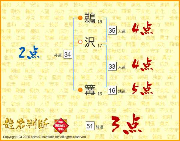 鵜沢篝さんの人運は33画の4点!