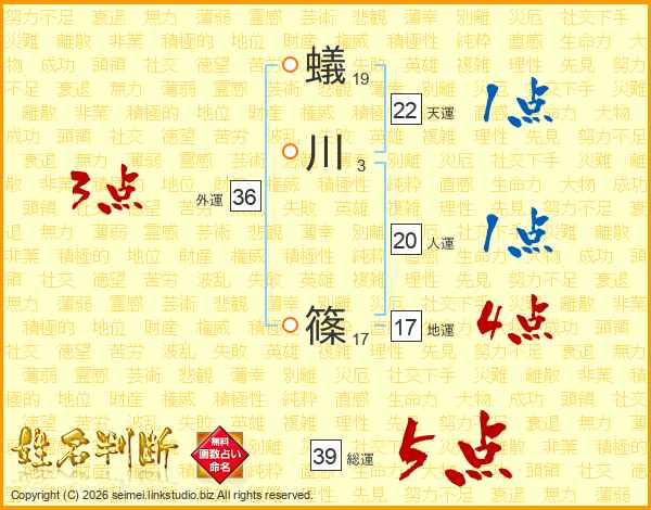 蟻川篠さんの総運は39画の5点!