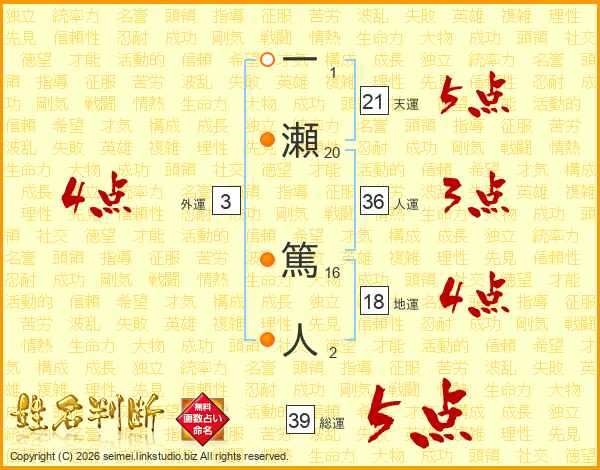 一瀬篤人さんの天運は21画の5点!