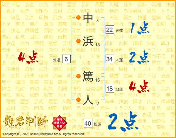 中浜篤人さんの総運は40画の2点!
