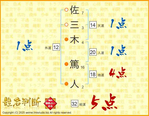 佐(7画)三(3画)木(4画) 篤(16画)人(2画)