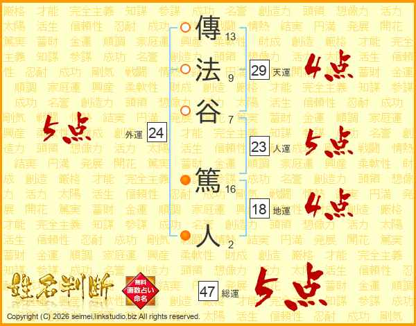 傳法谷篤人さんの総運は47画の5点!