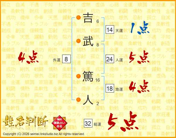 吉武篤人さんの総運は32画の5点!