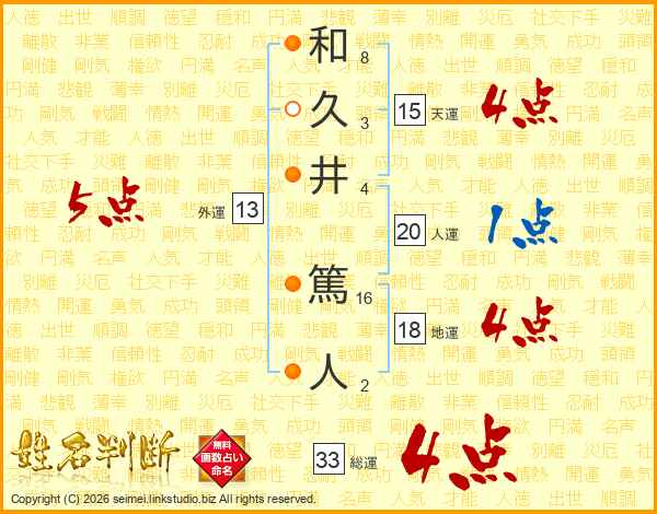 和(8画)久(3画)井(4画) 篤(16画)人(2画)
