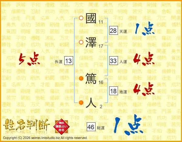 國澤篤人さんの総運は46画の1点!