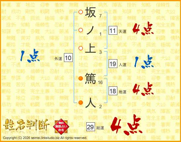 坂ノ上篤人さんの総運は29画の4点!