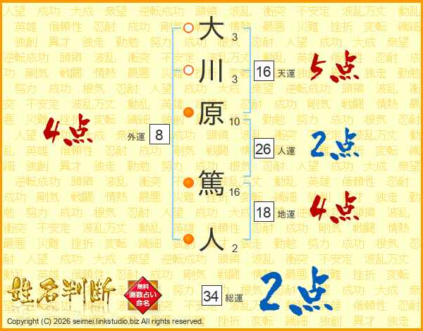 大(3画)川(3画)原(10画) 篤(16画)人(2画)
