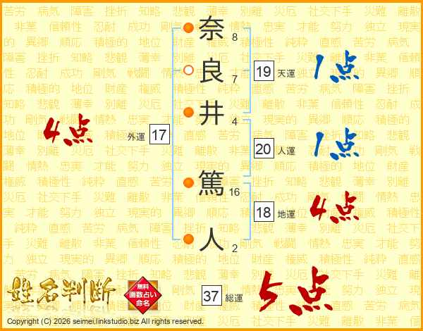 奈(8画)良(7画)井(4画) 篤(16画)人(2画)