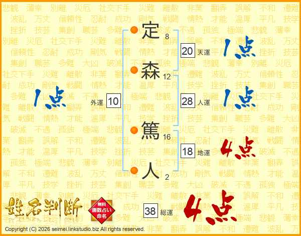 定森篤人さんの総運は38画の4点!
