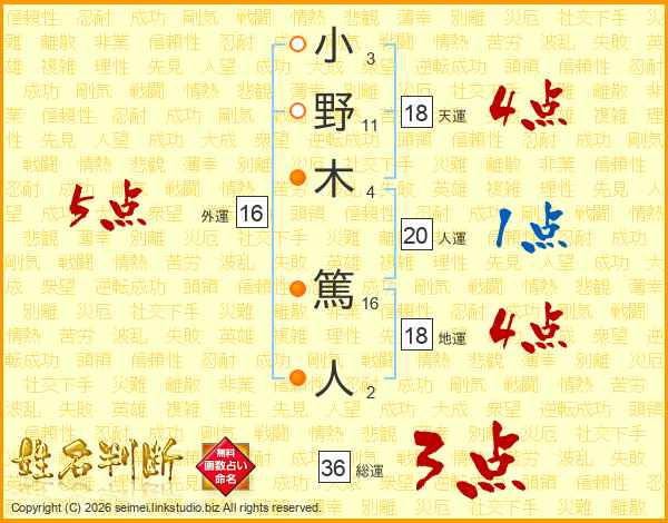 小(3画)野(11画)木(4画) 篤(16画)人(2画)