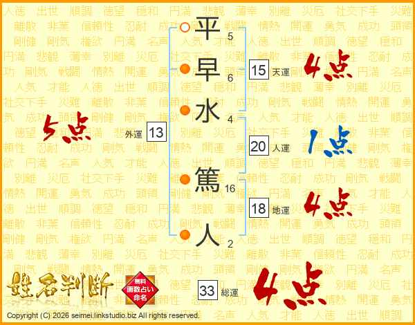 平早水篤人さんの総運は33画の4点!