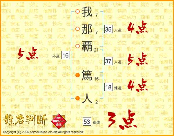 我那覇篤人さんの外運は16画の5点!