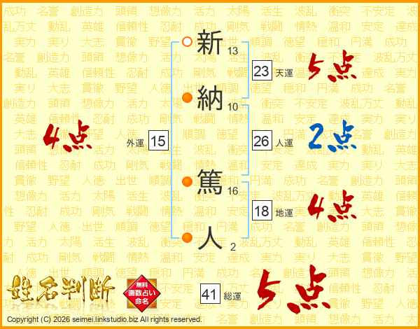新納篤人さんの総運は41画の5点!
