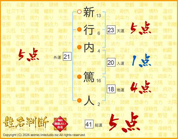 新(13画)行(6画)内(4画) 篤(16画)人(2画)