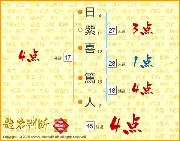 日(4画)紫(11画)喜(12画) 篤(16画)人(2画)