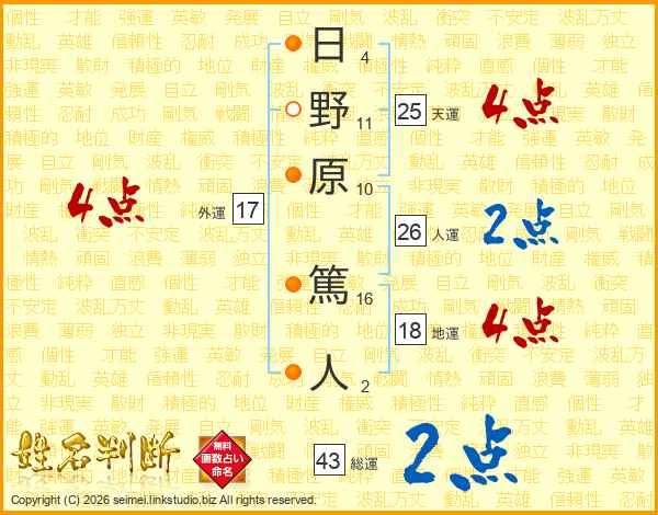 日野原篤人さんの総運は43画の2点!