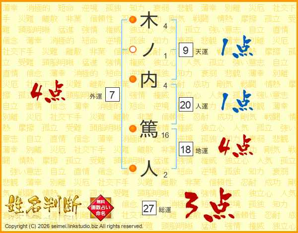 木ノ内篤人さんの総運は27画の3点!