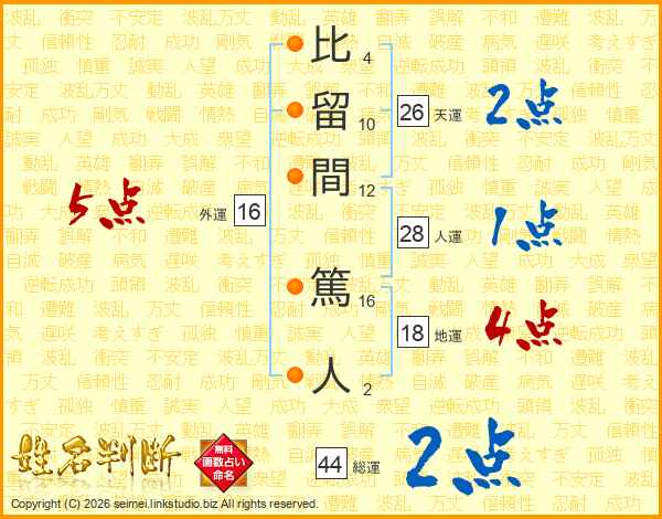 比留間篤人さんの天運は26画の2点!
