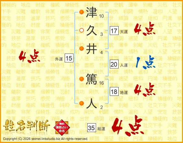 津(10画)久(3画)井(4画) 篤(16画)人(2画)