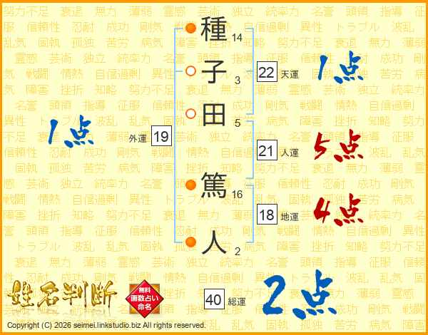 種子田篤人さんの人運は21画の5点!