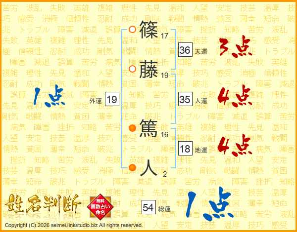 篠藤篤人さんの総運は54画の1点!