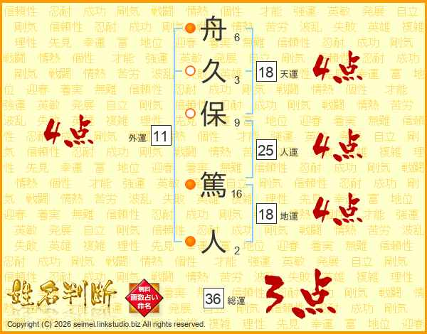 舟(6画)久(3画)保(9画) 篤(16画)人(2画)