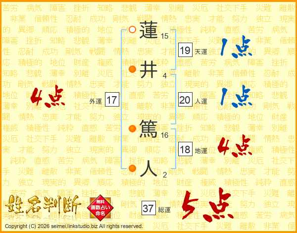 蓮(15画)井(4画) 篤(16画)人(2画)