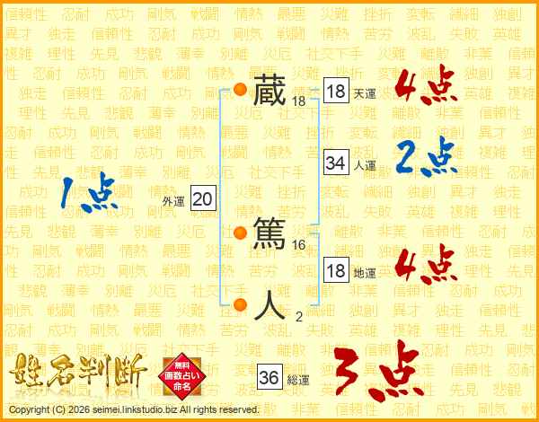 蔵(18画) 篤(16画)人(2画)
