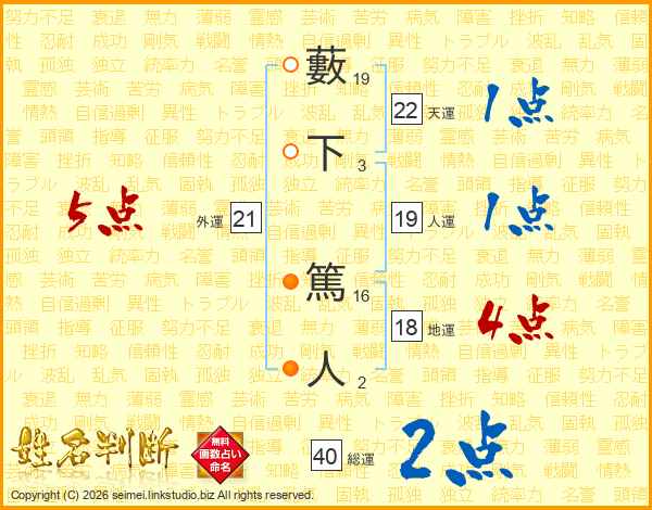 藪下篤人さんの天運は22画の1点!