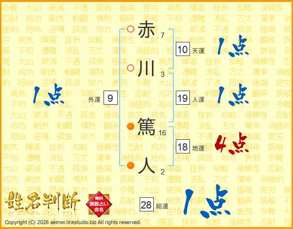 赤川篤人さんの総運は28画の1点!