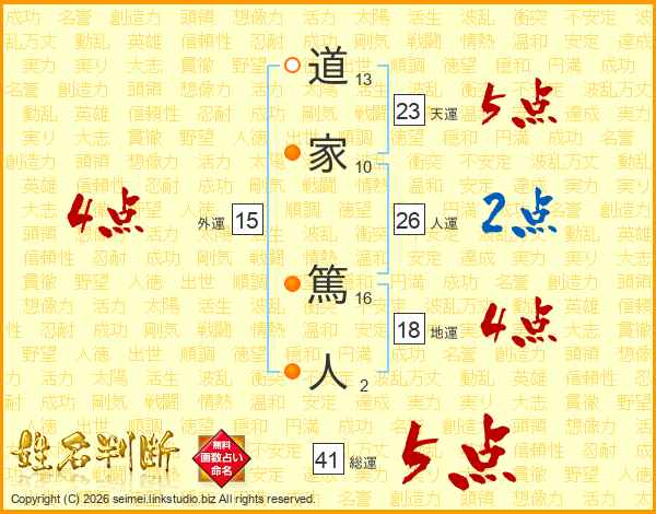道家篤人さんの総運は41画の5点!