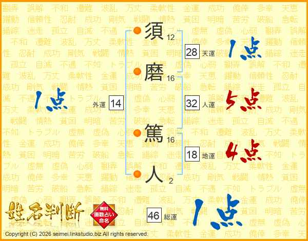須磨篤人さんの総運は46画の1点!