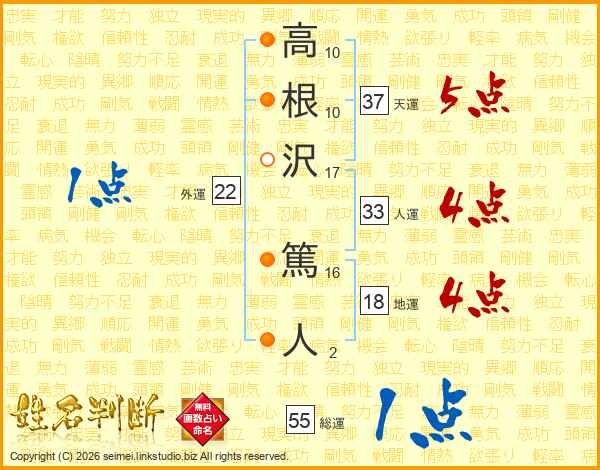 高根沢篤人さんの総運は55画の1点!