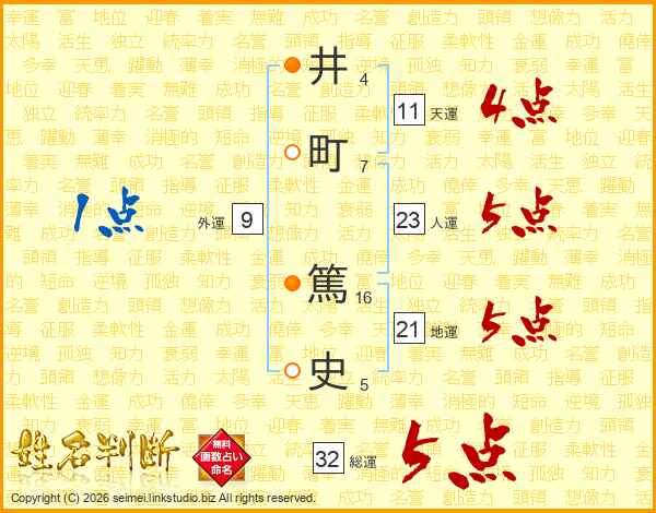 井(4画)町(7画) 篤(16画)史(5画)