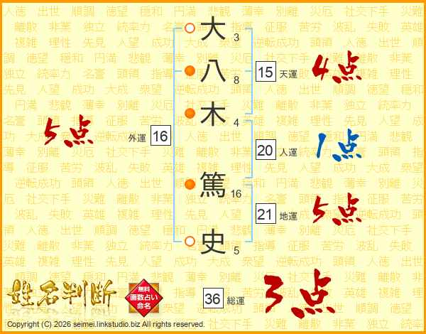 大(3画)八(8画)木(4画) 篤(16画)史(5画)