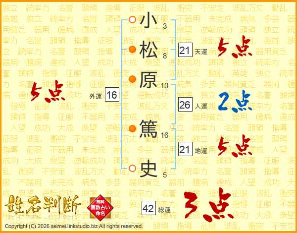 小松原篤史さんの天運は21画の5点!