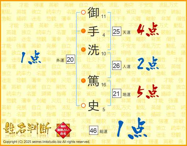 御(11画)手(4画)洗(10画) 篤(16画)史(5画)