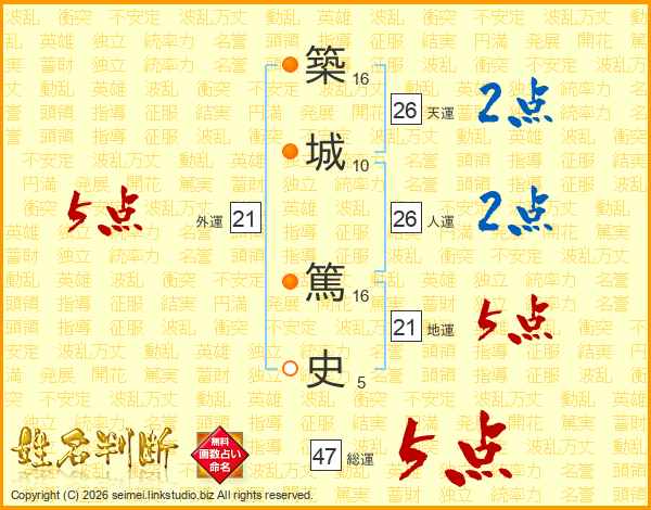 築(16画)城(10画) 篤(16画)史(5画)