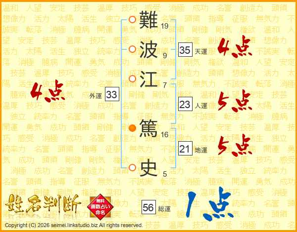 難(19画)波(9画)江(7画) 篤(16画)史(5画)