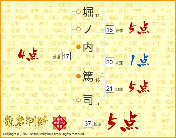 堀ノ内篤司さんの総運は37画の5点!